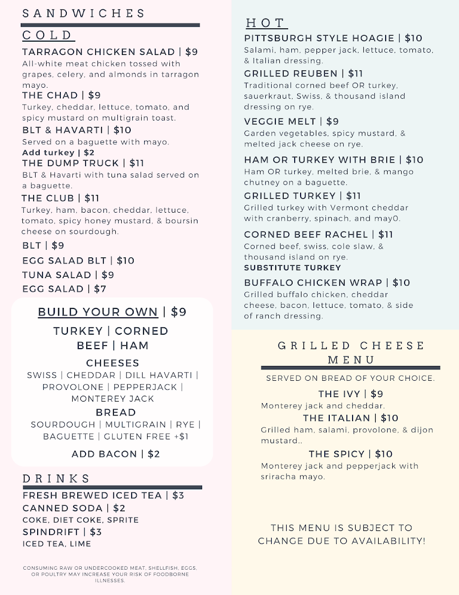 Choose your meat, cheese, toppings, & bread to build a sandwich to your liking!